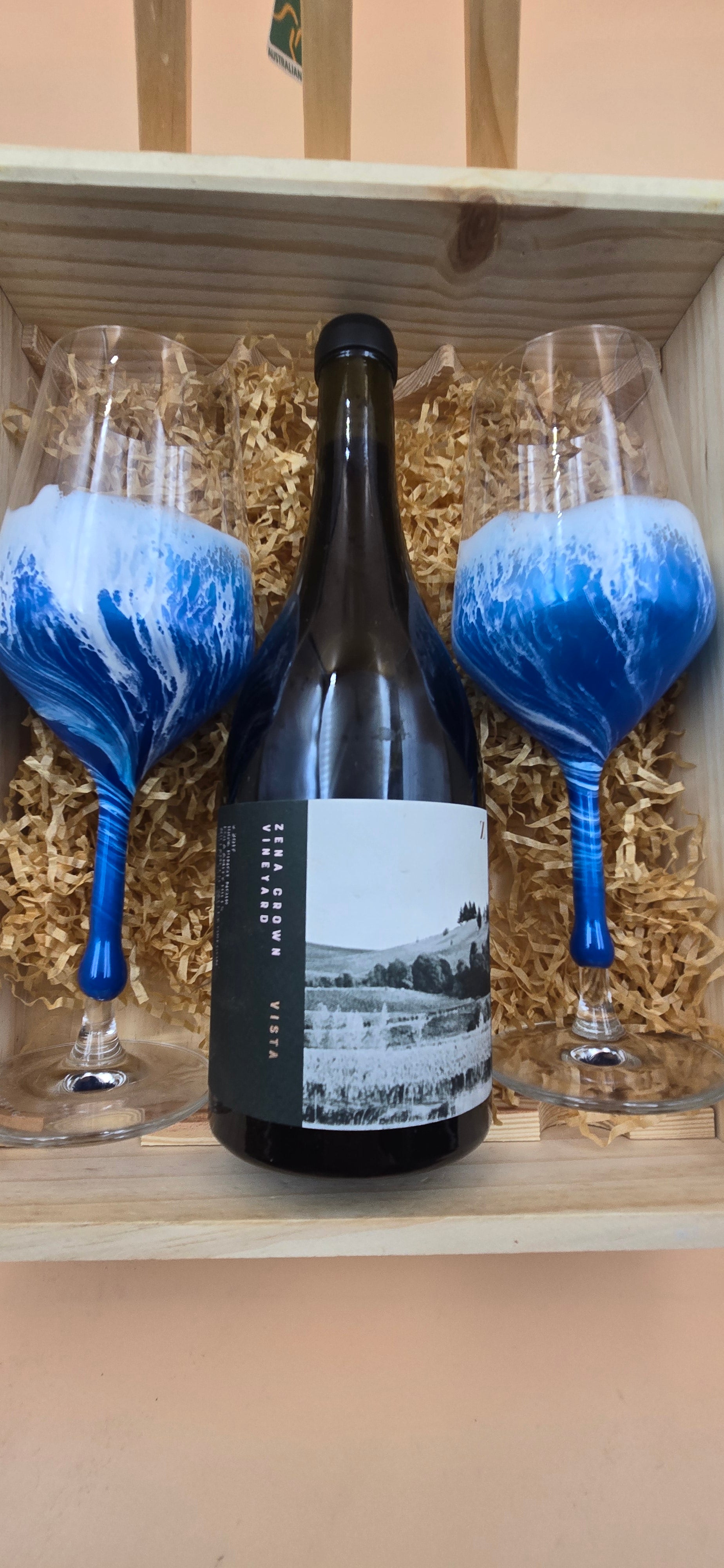 This is LED free, Crystal wine glasses, crafted by river table in North shore studio by hand. It's very delicate and elegant wine glasses for people who in love with the ocean and wine